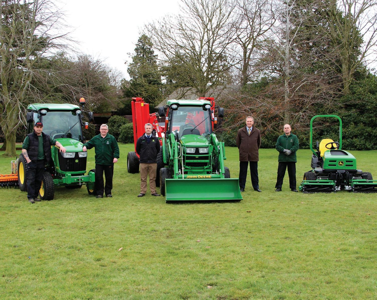 The greenkeeping team elected to buy a John Deere 5100M 100hp utility tractor, two 8800A TerrainCut five-gang rotary rough mowers, a 2030A ProGator utility vehicle equipped with a lowprofile HD200 turf sprayer, a 1200A self-propelled bunker rake and a 2653B PrecisionCut triplex tees & surrounds mower.