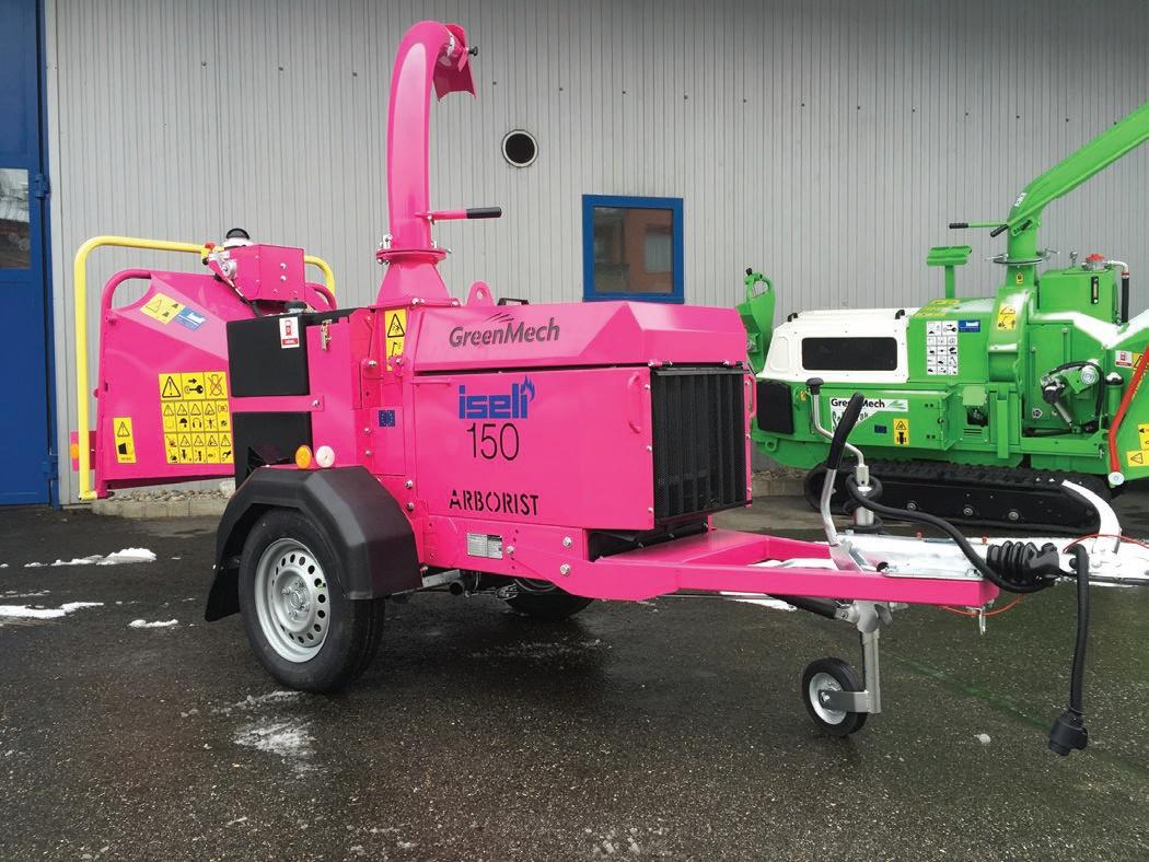 Swiss landscapers Bächler + Güttinger has commissioned chipper manufacturer GreenMech to supply an Arborist 150 in the company’s pink colours to match tractors and diggers.