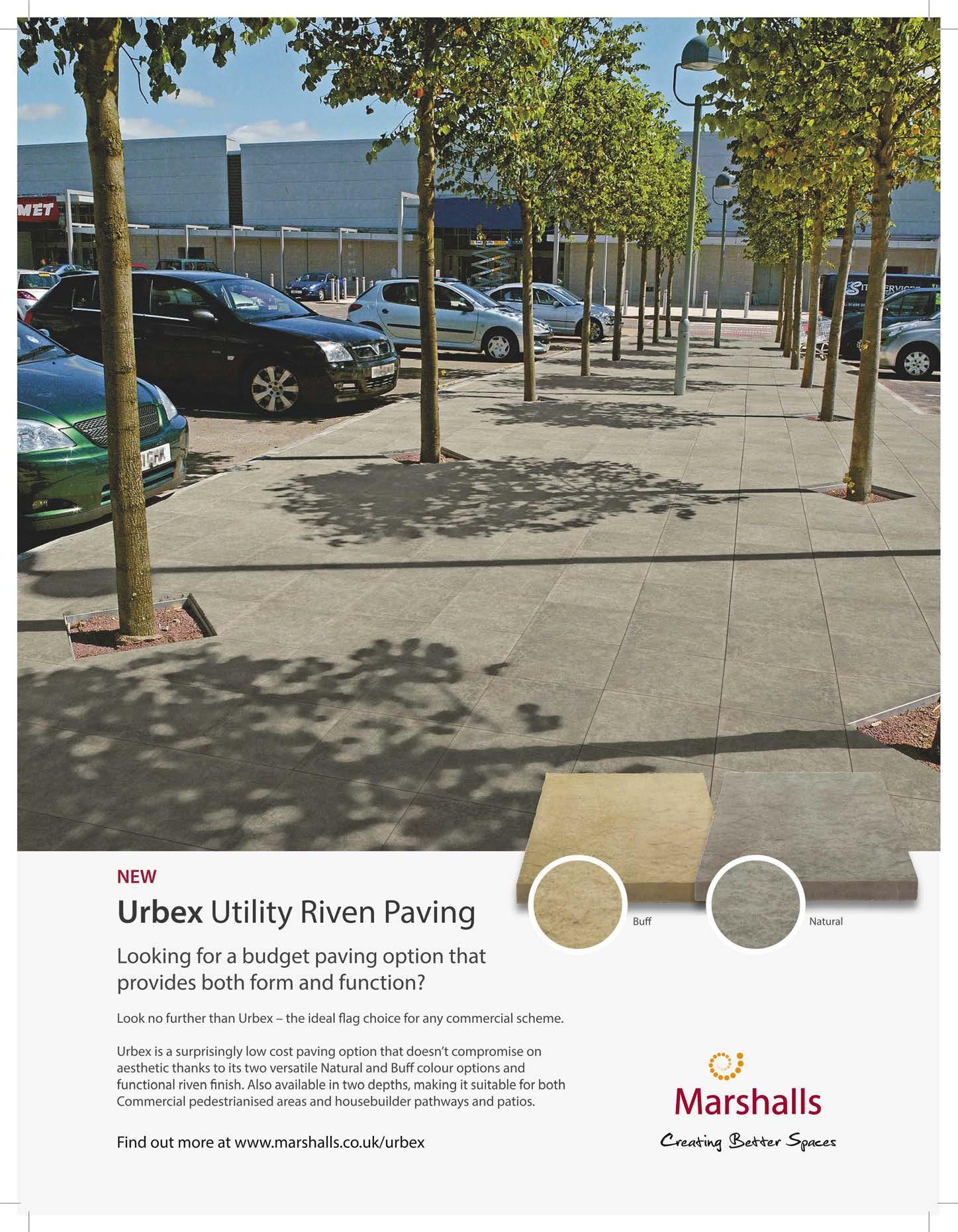 Marshalls is proud to introduce a new riven utility paving range to the market. An ideal budget paving option, Urbex is a great alternative to Standard Pimple paving, and is available in three different plan sizes and two thicknesses in order to best suit particular environments. Urbex is an ideal flag choice for both housing schemes and commercial, pedestrianised areas thanks to its versatile Natural and Buff colour options and functional riven finish.