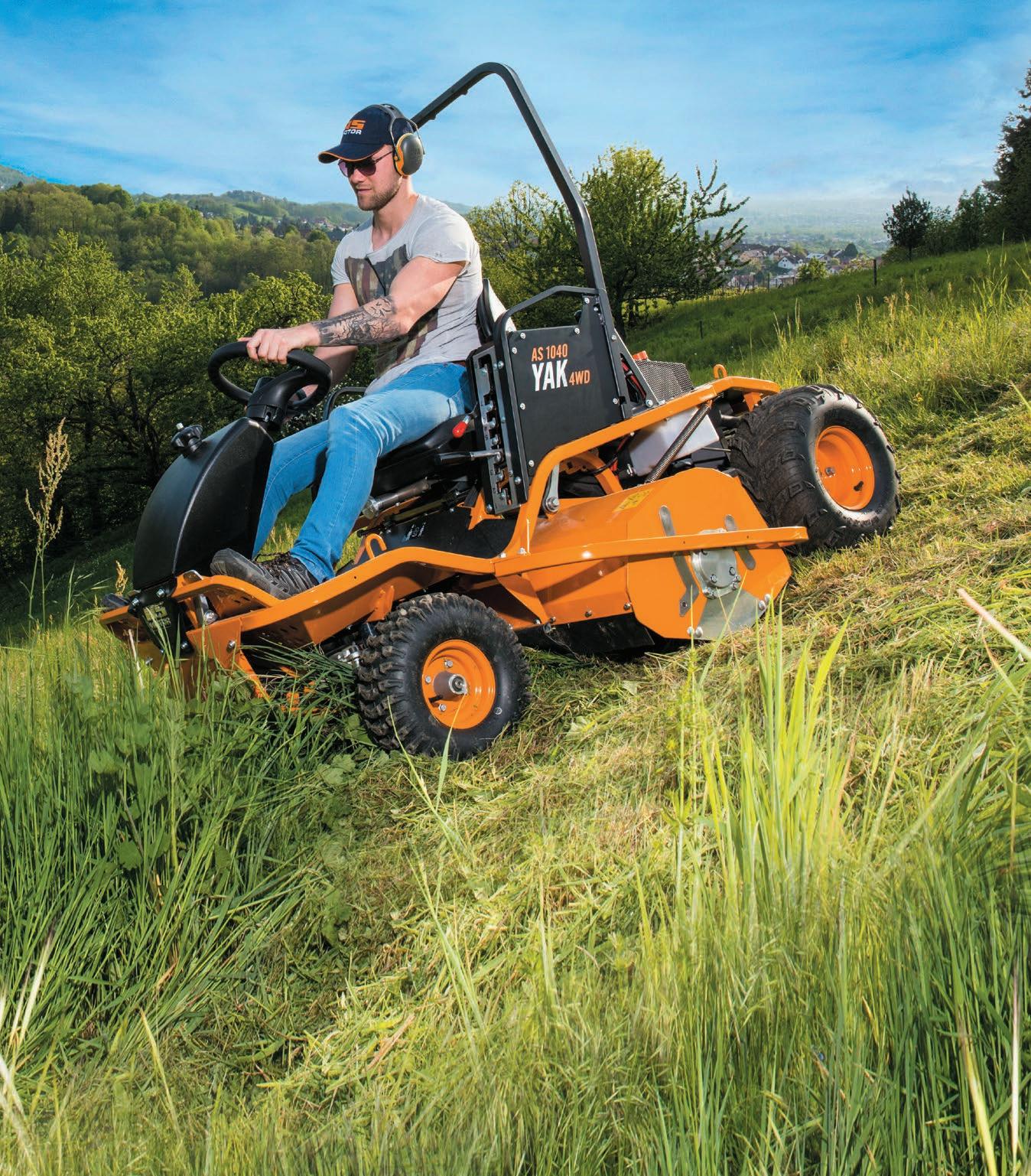 The new AS 1040 Yak 4WD ride-on flail mower from AS Motor combines the cutting performance of a flail mower with the climbing ability and comfort of an AS 4WD ride-on mower.
