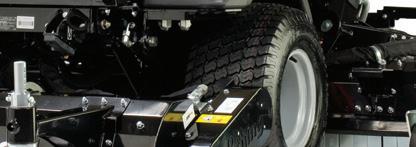 Glide Steer enables the operator to drive around an obstacle such as a tree with an extremely tight turning circle, allowing a singlecut pass without the worry of the wheels scuffing the turf. At full lock, the uncut circle left by the GR2120s mower is only 100cm. For Merlin’s team, it drives easily into a box van.