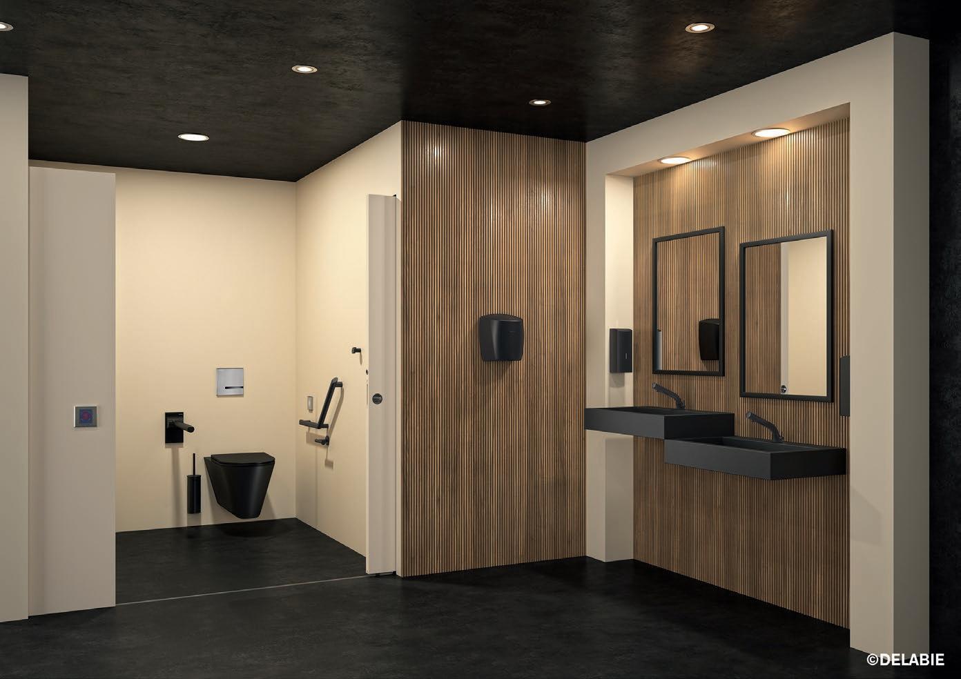2. DELABIE’s Black Collection includes the BINOPTIC electronic tap in a matte black finish