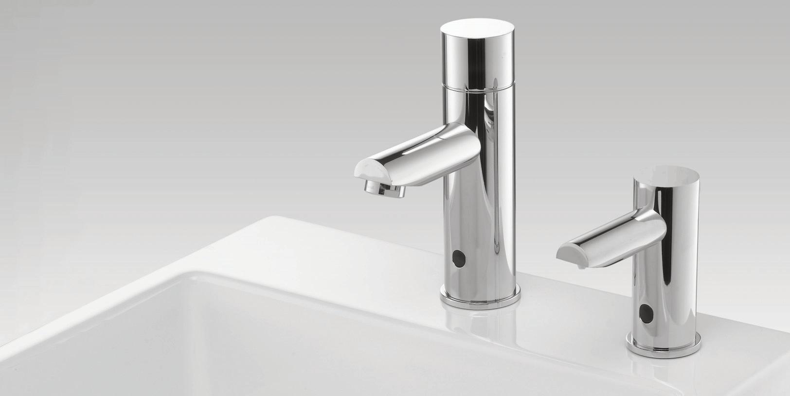 Dolphin Dispensers are now offering matching soap dispensers to their sensor taps in most of their range – both in counter mounted & panel mounted versions. These can be battery or mains powered and come with a chrome or a satin chrome stainless steel finish –the opportunities are enormous in public washrooms, airports, fitness centres, shopping centres, prestigious office blocks.