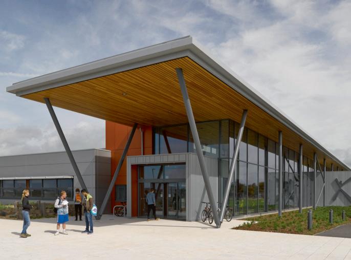A key element of the multi-million pound regeneration project at the Daedalus airfield in Hampshire is CEMAST Fareham - Centre for Engineering and Manufacturing Advanced Skills - for Fareham College. The state-of-the-art centre, designed by architects Perkins Ogden, features 670m2 of the Hunter Douglas solid wood linear open ceiling system in fire treated Siberian Larch. This has been installed by contractor Broadsword Projects in three different widths - 70mm, 92mm and 114mm. A further 455m2 solid wood linear open system in Siberian Larch, fully treated for external application, was also installed under the striking canopy that welcomes visitors to CEMAST.