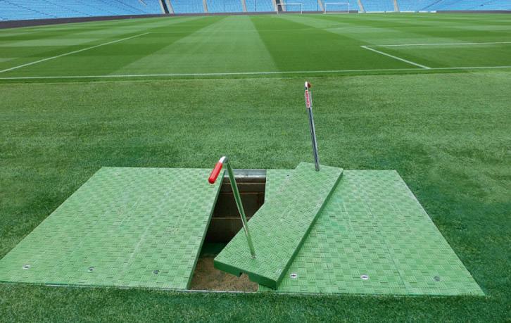 Pop Up Power Supplies recently installed nine retractable service power units within the stadium arena at Chelsea Football Club. The half tonne units are buried out of site beneath the perimeter of the pitch and are raised out of the ground when required. Chelsea Technical Services Team needed a power solution to enable the ground staff to power their specialist hydroponic equipment to nurture the growth of the pitch. The solution was Pop Up Power retractable service units. The cabling was provided by YESS. The Chelsea ground staff now have access to multiple 63 A and 32 A TPN waterproof power feeds. The cabling and power units were installed and commissioned by Springfield Engineers over a 6 week time frame which was ahead of schedule. Pop Up Power also supply electricity through Inground Units with flip top lids and Bollards in a variety of designs to suit the surroundings.