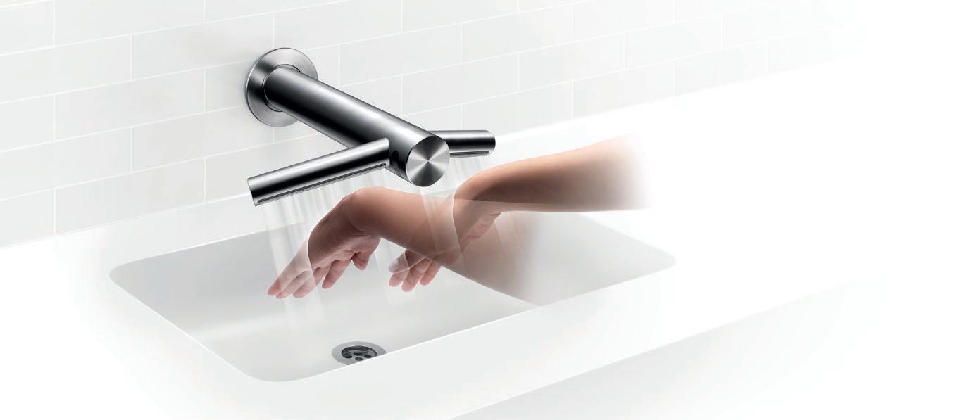 To improve the user experience and support with space-saving in smaller washrooms, specifiers should look to one product that can both wash and dry hands like the Dyson Wash+Dry hold Airblade™. This technology in the tap means there no need for users to move to a separate drying area, reducing water that drips on the floor. Taking just 14 seconds to dry hands, users also spend less time in the washroom, making the flow of the