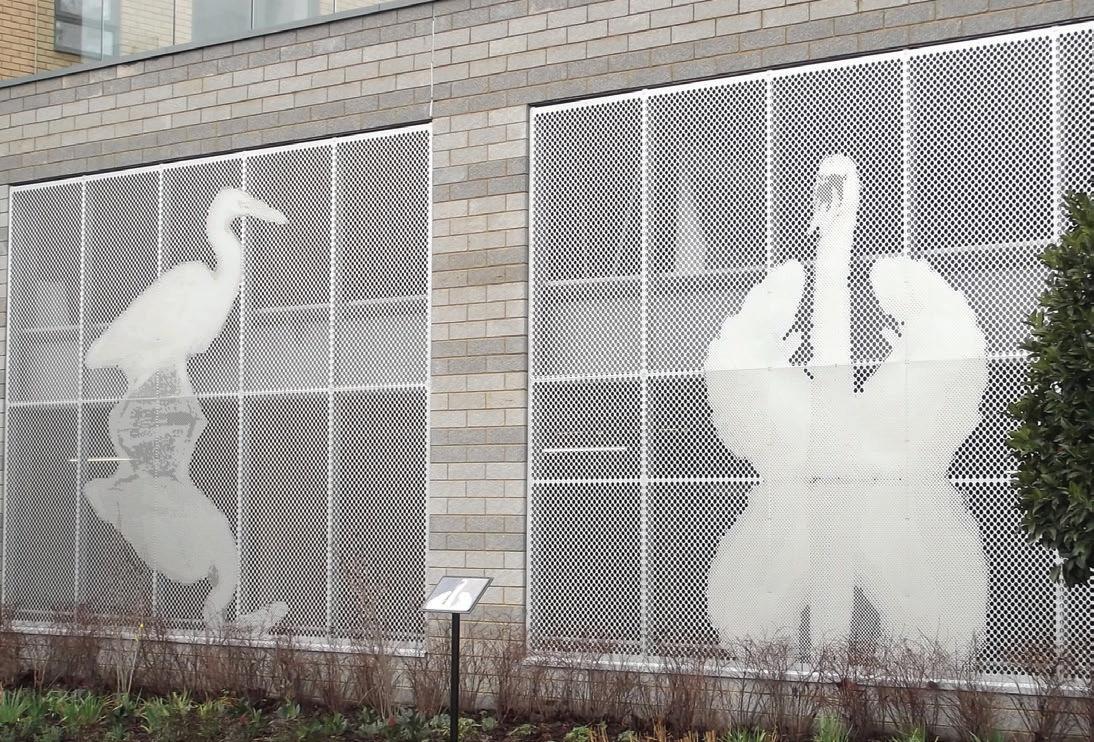E E Ingleton have completed further projects using their new PicPerf© image perforation system. Using the new software, anodised aluminium panels were manufactured for Thames Archtectural, and installed in Berkeley Homes Victory Pier luxury apartment development in Gillingham, as well as for ambulance bay screen panels at University College Hospital in London. Both projects called for very high open area panels to meet ventilation requirements, whilst retaining striking images and patterns. The Victory Pier panels feature seven different waterbirds along the car park frontage, whilst the UCL installation was based on the architect’s ‘funky trees’ concept. The PicPerf© system is proving highly effective where designers require a visually striking and unique installation.