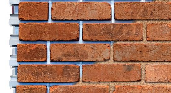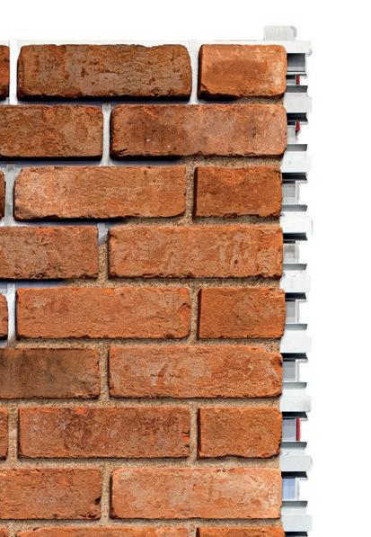 Manufactured from synthetic render, the StoCleyer B brick slips offer a realistic brick appearance with a durable, weatherresistant finish. The StoDeco Profiles replicate stone architectural detailing on the window heads and are manufactured using a lightweight material that is easy to install.