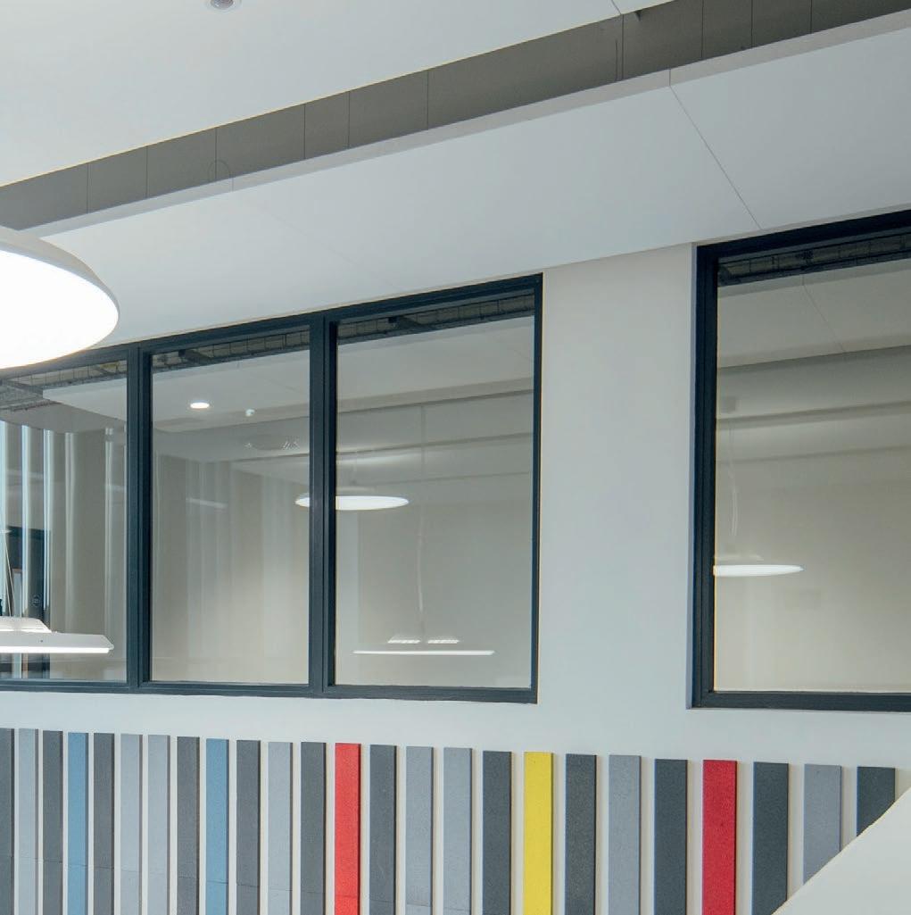 Panels were chosen in both grey and natural finishes to provide a discreet look whilst complementing the interior design. Troldtekt solutions excel at providing acoustic comfort with a visually attractive, aesthetic tactile surface along with high durability and low-cost lifecycle performance.