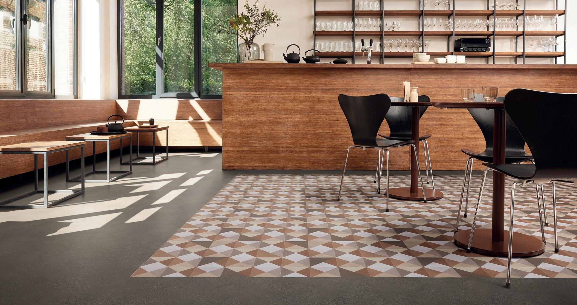 We always start with what we already have, using pre-existing designs or colourways for inspiration. We then go to the market and ask for feedback, to understand what our customers need and if there is anything they feel are missing. For example, with the most recent refresh to our Step safety vinyl flooring collection, we worked closely with our sales team and reached out to their customers via a roundtable event. We took this opportunity to research what the market is looking for in a modern safety