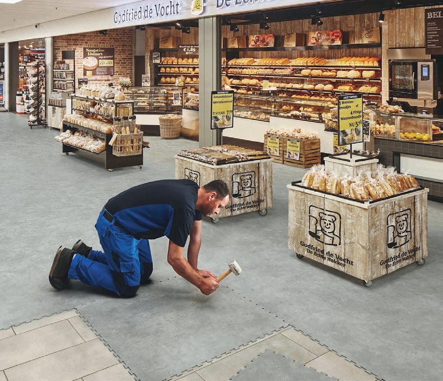 GTI Max tiles provide a speedy and durable renovation option for high and heavy traffic areas and can be installed over existing floorcoverings with minimal subfloor preparation, no adhesives and