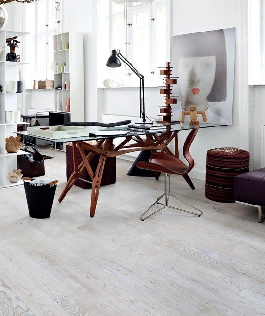 Developed in response to the growing demand for lightcoloured wooden floors, Junckers’ PreLak Nordic primer adds new interest to the natural colouration of raw timber. PreLak Nordic is a subtle, white-pigmented stain best suited to lighter wood species such as ash, oak, beech, maple or pine which has been sanded and prepped.