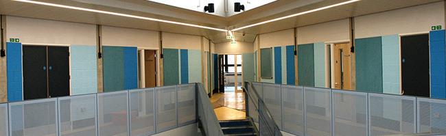 A variety of Rockfon acoustic ceiling tiles are installed throughout the new Islwyn High in Caerphilly school to control noise and harmonise with the contemporary interior. Rockfon Scholar 40mm and Rockfon Tropic dB40 ceiling tiles are installed on the school’s top floors in part to reduce the noise generated internally by rainfall on the external metal roof. Rockfon Scholar, with its Class A sound absorption and durable, impact resistant surface, is ideal for education buildings as it helps lower the level of reverberation in classrooms.