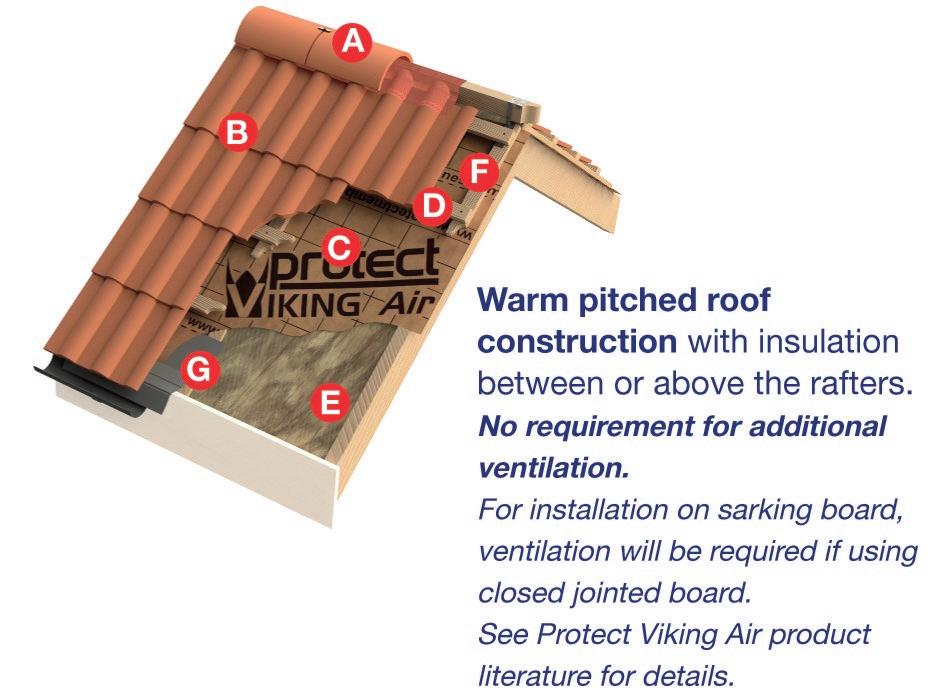 This next generation pitched roofing membrane offers class leading air and vapour permeability, ventilating the roof space for the ultimate in condensation control. Independently certified by BM TRADA, the underlay provides strong wind uplift resistance up to Zone 4 at 345mm batten gauge to BS 5534. To read more about Viking Air, see page 24 or visit www.protectmembranes.com/vikingair.