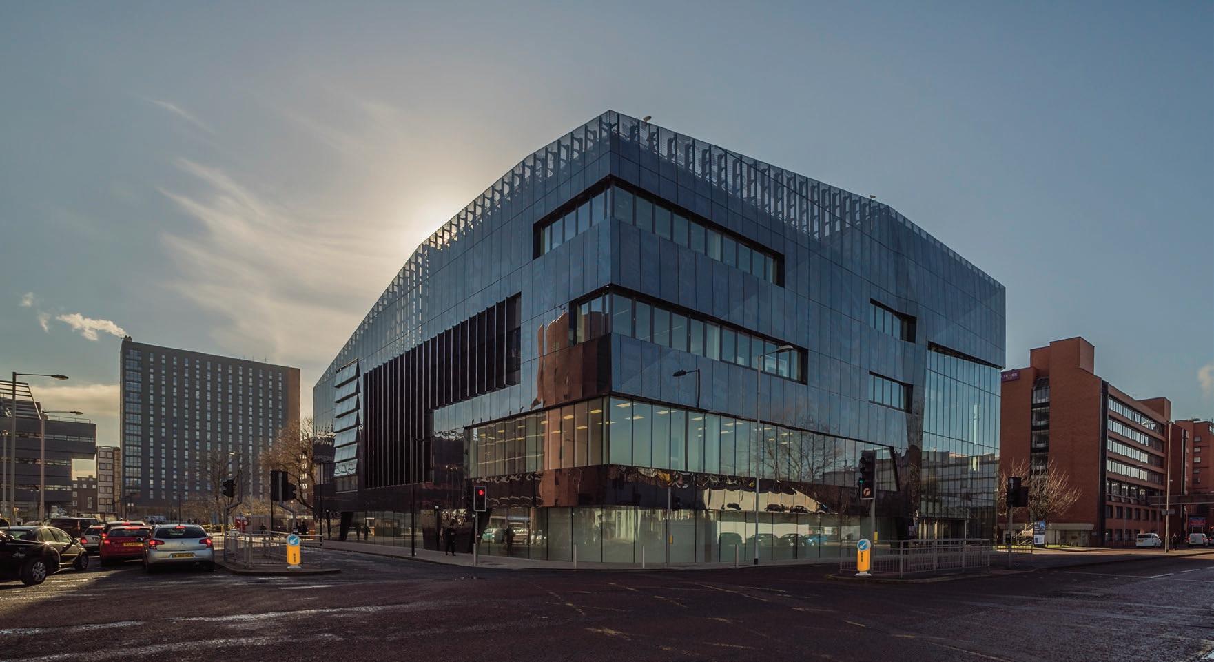 TM were approached to provide the façade to create a strong street frontage to the prominent corner location of both Ley Street and Perth Road . The genius unitised cladding was supplied in multiple shades of blue in keeping with the school’s corporate colours This metal cladding range can be supplied in an extensive range of NCS, RAL and anodised finishes
