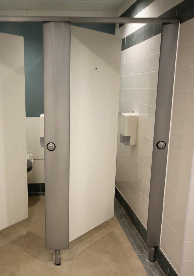 Washroom has played a key role in upgrading the washrooms at the busy Weston Favell shopping centre in Northampton. Key to the success of the washroom design is the installation of the new Alavo integrated consumable unit from Dolphin Dispensers which features subtle colour changing LEDs as well as concealed soap and hand dryers. Washroom installed its Senza cubicles in solid grade laminate (SGL) finished with an attractive walnut veneer to complement the contemporary style. Washroom’s Concerto integrated duct panel system was installed to fit underneath the vanities and behind the WCs and urinals.