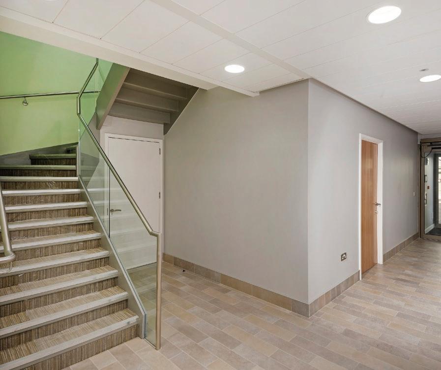 Knauf AMF Thermatex Acoustic ceiling planks create a luxurious feel for a new exclusive apartment development in a prosperous area of Newcastle. GT3 architects were attracted to Thermatex acoustic ceiling planks for the reception and circulation areas which set the tone for the rest of the building. The smooth, white elegant appearance of Thermatex Acoustic planks help give the interior a welcoming ambience for residents and visitors. The building’s public spaces have a light, airy, open feel, thanks to the ceiling’s high light reflection (85%) and low air permeability.