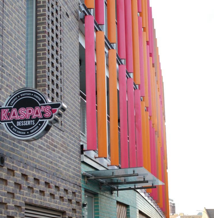 The AA ®540 window vents were specially fabricated by approved specialist subcontractor AB Glass to match the oxidised stainless steel cladding panels used on the façade of tessellating hexagons which mimic the shape of coins. The colours within these subtly change with the movement of the sun.