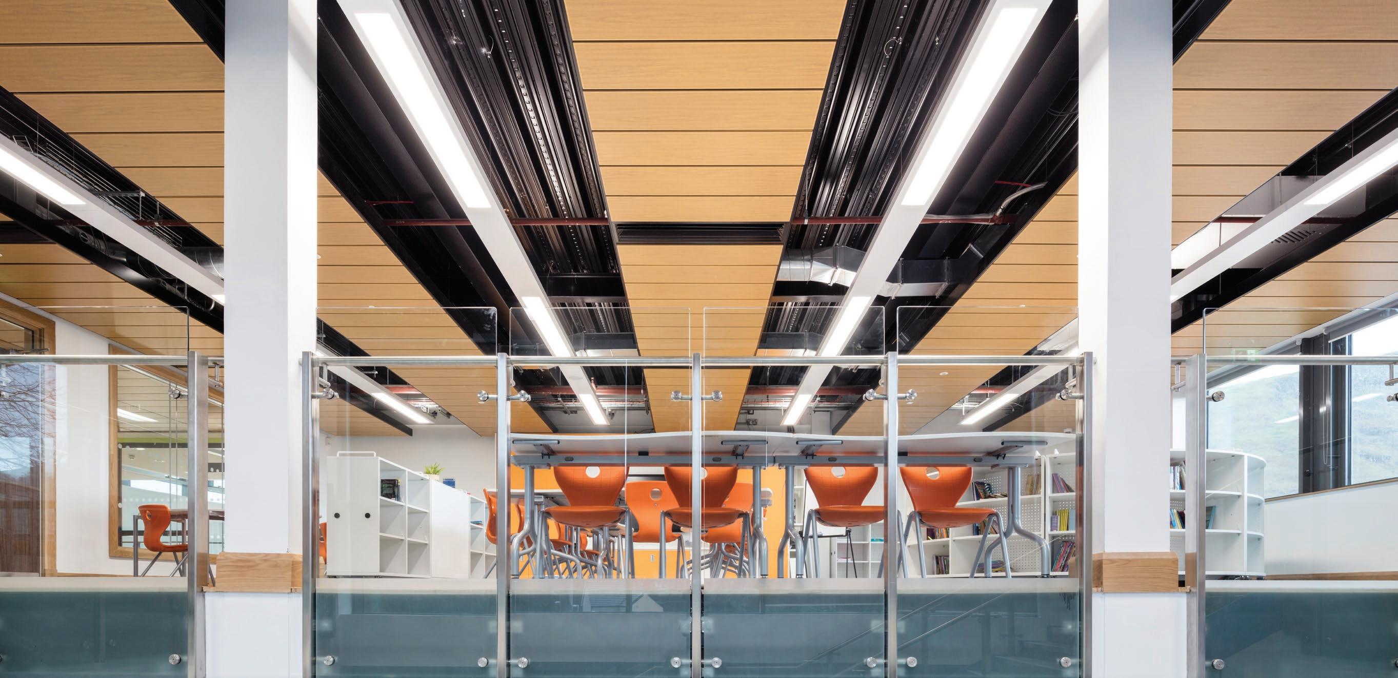 At the Cundall offices, all furnishings, insulation, interior paint, adhesives, oils, waxes, varnishes and finishes were specified for low or zero VOC, formaldehyde and toxic content. To maintain the air quality in high density areas, variable volume air distribution is controlled by CO2 sensors.