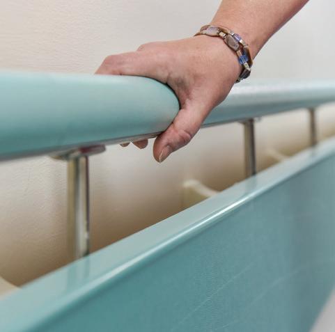 The Closomat accessible bathroom focuses on the new look Vita range of wash & dry (bidet) toilets. A rail system can be added around the bathroom walls, onto which can be added, as required, a washbasin- static or heightadjustable, grab rails, support arms, changing bench and a shower seat. A complimentary X/Y track hoist system can be ceiling-mounted, or supported on slimline gantry legs, to facilitate transfer around the room- and beyond.