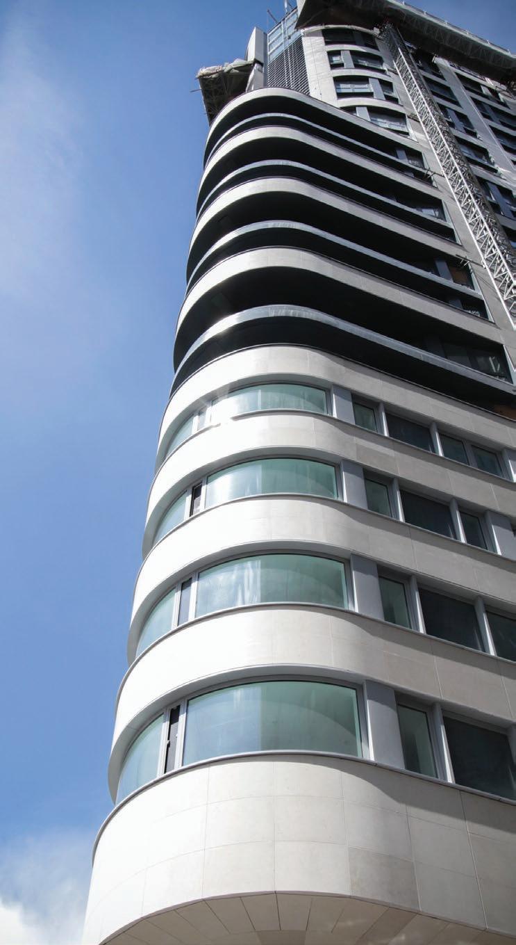 An impressive new contemporary cliff top house in Poole Dorset has bene fi ted from the superior airtightness performance qualities of WraptiteSA from the A.Proctor Group. Developer Portus Homes selected Wraptite-SA, which combines the important properties of vapour permeability and airtightness in one self-adhering membrane. Wraptite-SA, the only self-adhering vapour permeable air barrier certi fi ed by the BBA, was applied directly to the concrete walls behind the Grespania Coverlam porcelain external cladding. The introduction of Wraptite-SA in the construction made a signi fi cant contribution to the building’s thermal performance by preventing lateral air movement.