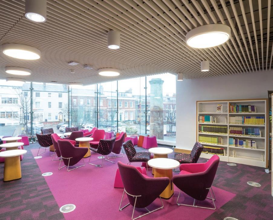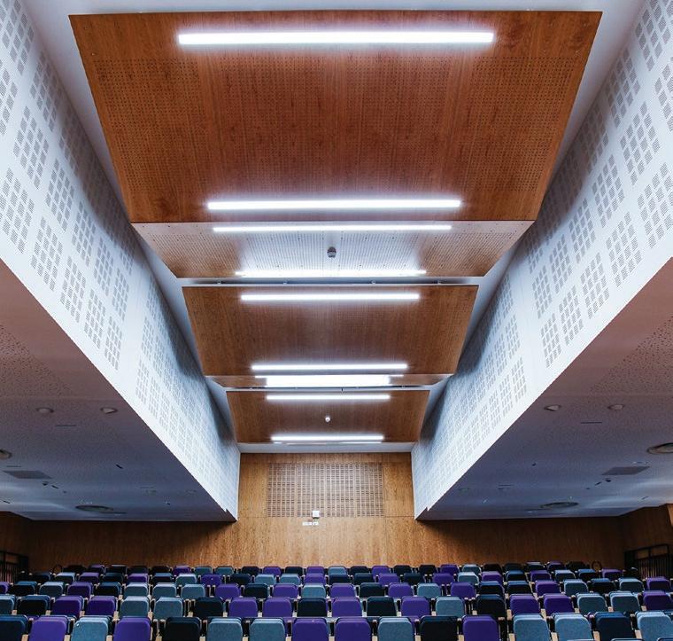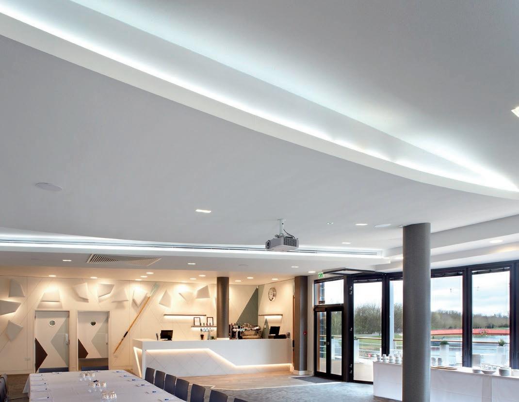 The lounge has an understated sophistication with its marble fireplaces and velvet furniture. This is completed by its double-height ceilings, accented by Air Diffusion’s architecturallydesigned FlowBar which was chosen for the unique aesthetic it brings to a room. This highcapacity slot diffuser can adapt to a variety of spaces to offer the perfect level of ventilation, whilst enhancing the overall look of a space.