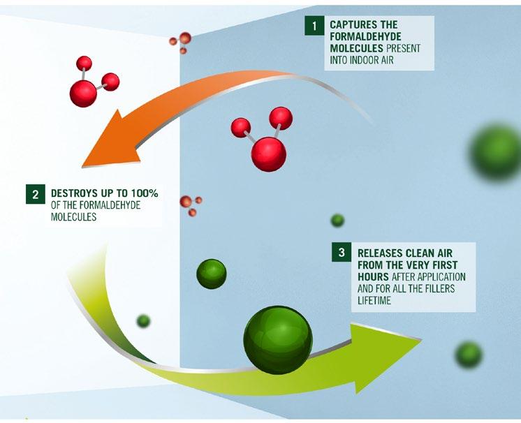 TOUPRET skimming fillers with SANEO are unique in their ability to capture and destroy formaldehyde molecules that are present in the air in your home, work place, schools and other common areas.