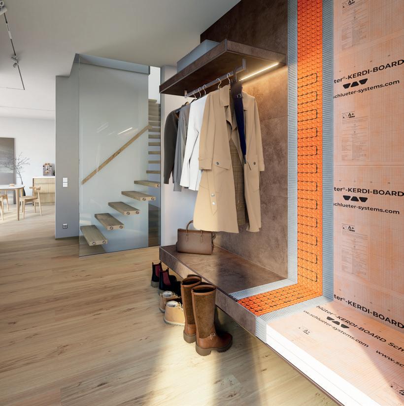 The all-in-one electric undertile heating system for comfortable warmth under floors and on walls with tile and stone coverings. The multi-functional heating system provides a unique combination of fast reacting undertile heating and uncoupling. The Schlüter-DITRA-HEATDUO version suitable for floors, includes an integrated thermal break and acoustic reduction to aid in faster warm-up time and heat loss.