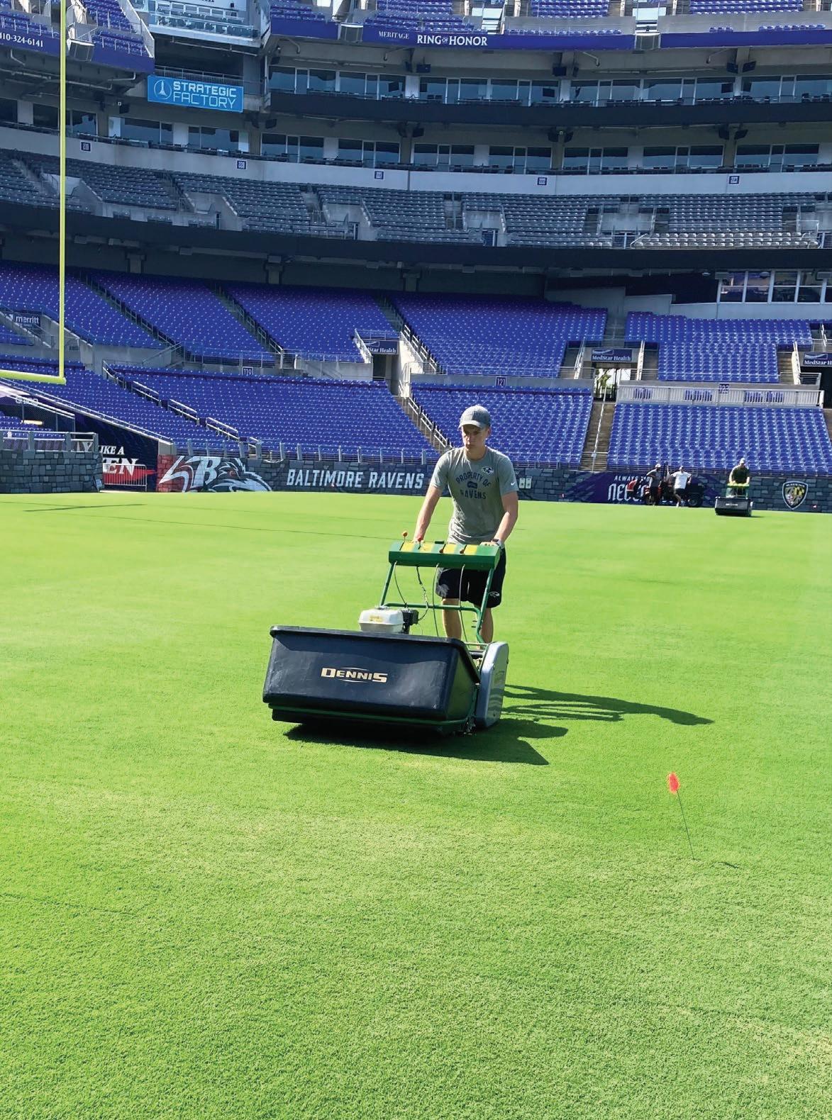 Sean Kauffman, Head Groundskeeper for National Football League (NFL) side Baltimore Ravens has revealed how two Dennis G860 cylinder mowers have significantly helped the grounds crew to improve the standards of the pitch at the M&T Bank Stadium.