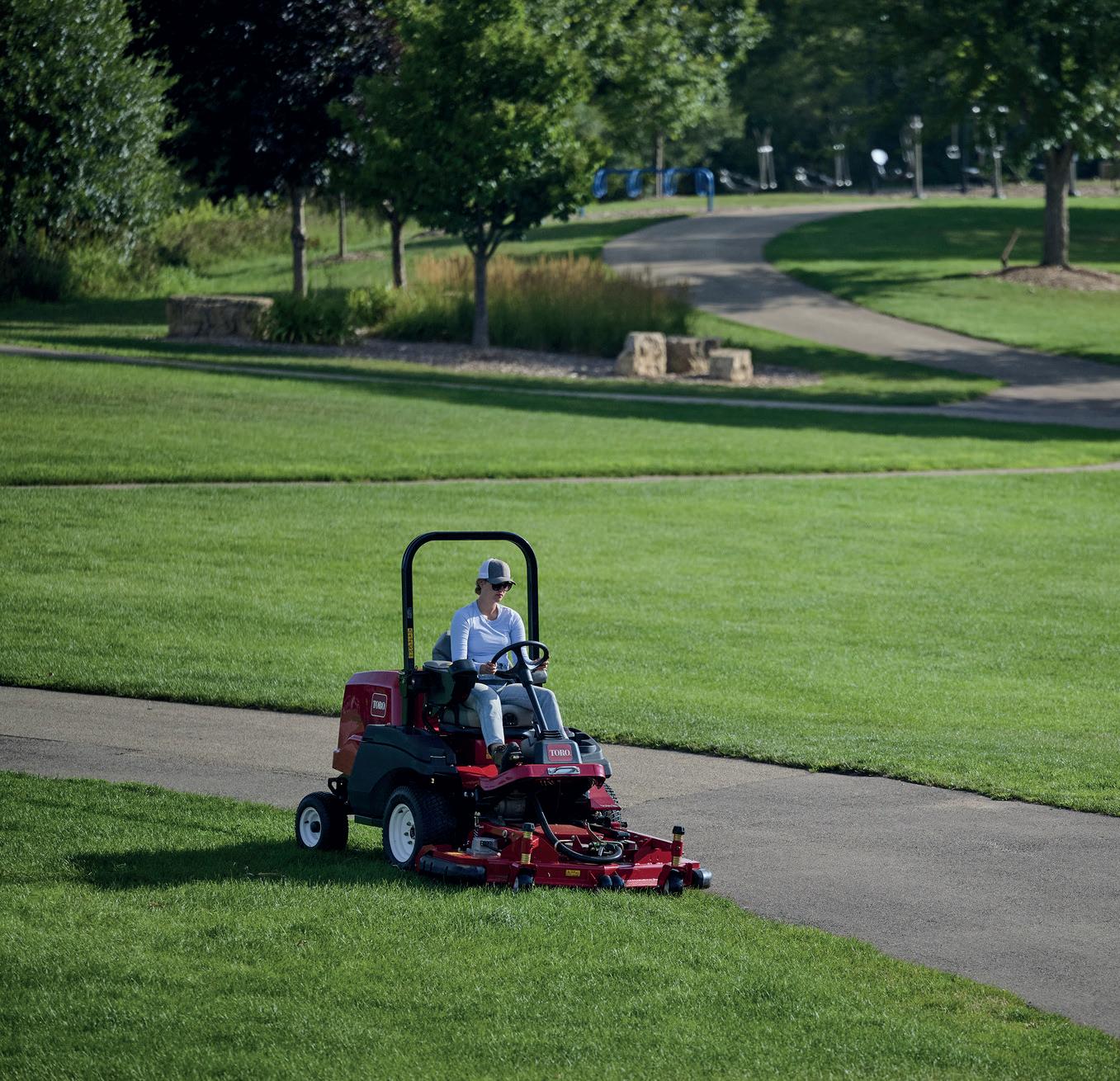 The F391 has an environmentallyfriendly diesel engine that gives powerful performance even when undertaking heavy duty work. Drive is via a tworange hydrostatic transmission with on-demand four-wheel drive for improved grip in wet conditions or sloping land. With fast, high-quality mowing/ mulching and a comfortable ergonomic operator’s platform, it makes a fantastic addition to their fleet and is ideal for parks, open spaces and local authority work.