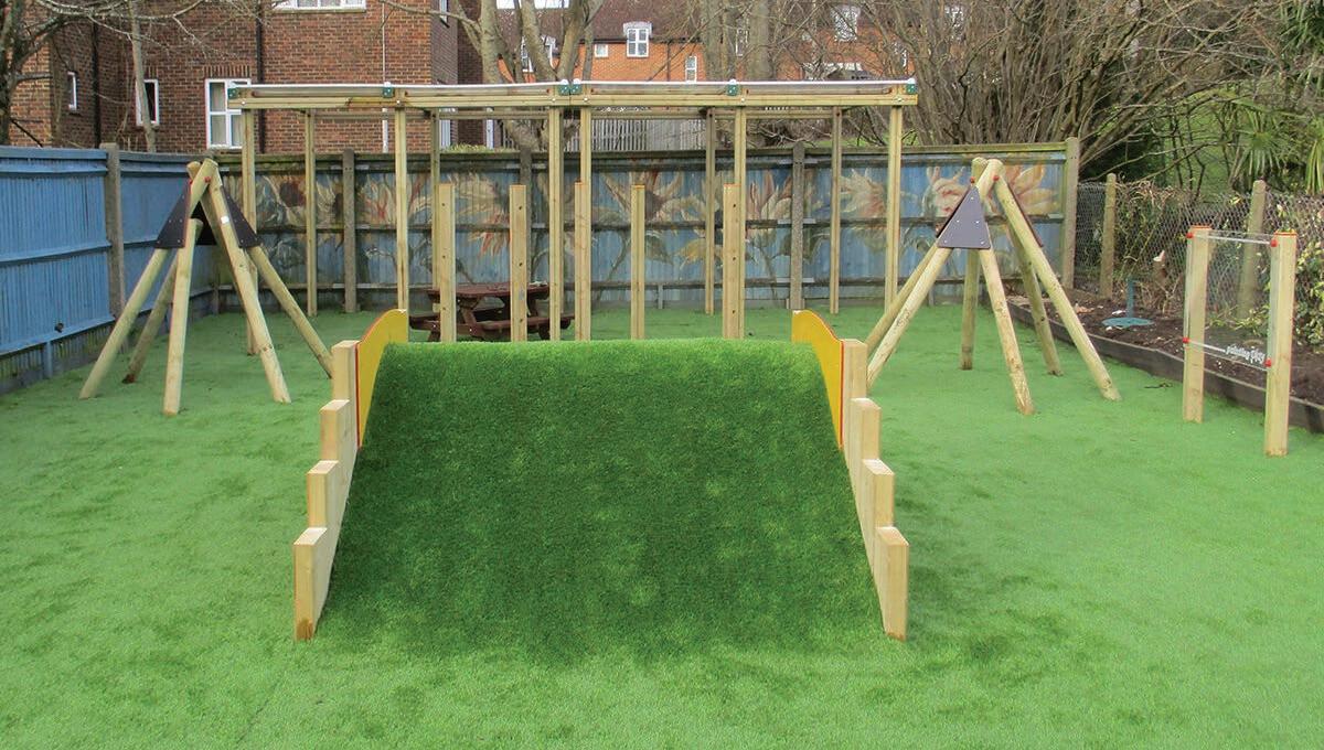 The bespoke playground features plenty of space for children to exercise and socialise, including climbing towers, wobbly bridges and climbing nets.