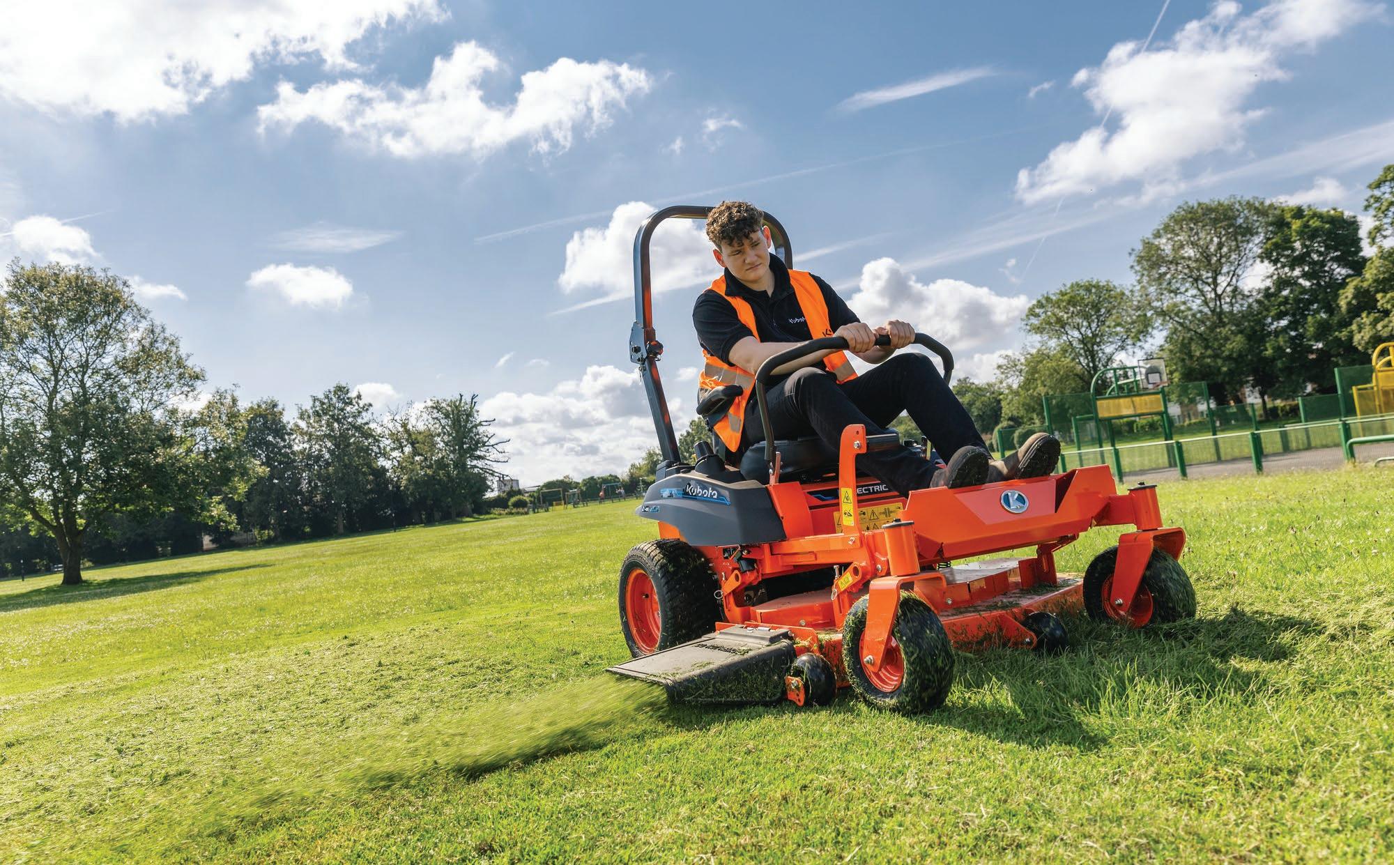 Those looking to meet productivity requirements with a sustainable power source can find the answer in Kubota’s Ze electric zero-turn range, with the Ze-421 and larger Ze-481 (1.05 and 1.2m cut) offering new levels of user comfort through reduced noise and vibration during operation.
