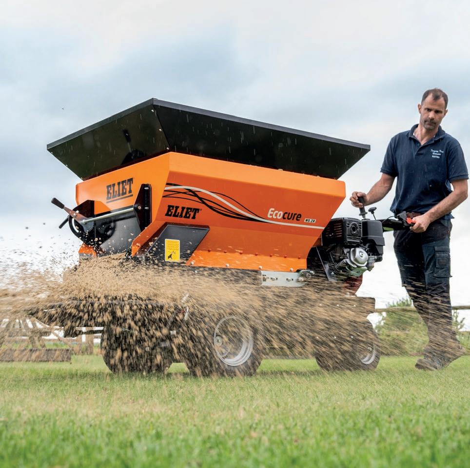 The ELIET EcoCure™ ZR WS self‑propelled topdresser offers a variable, wide spread distribution of up to 8mtrs.