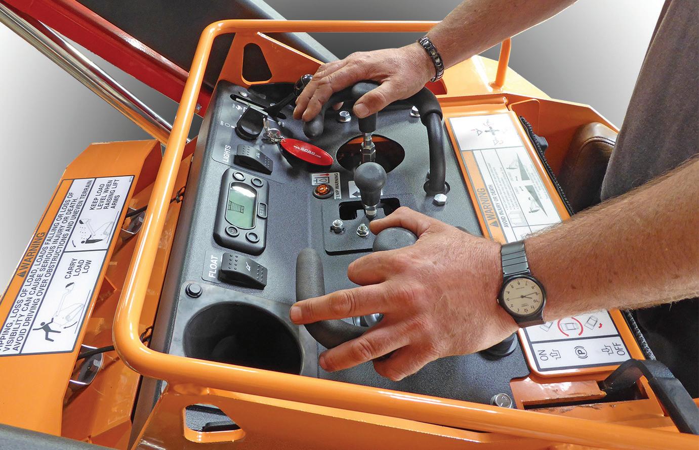 The control panel is also typical SCAG with clear information, all within easy reach, plus there is joystick control for drive and bucket.