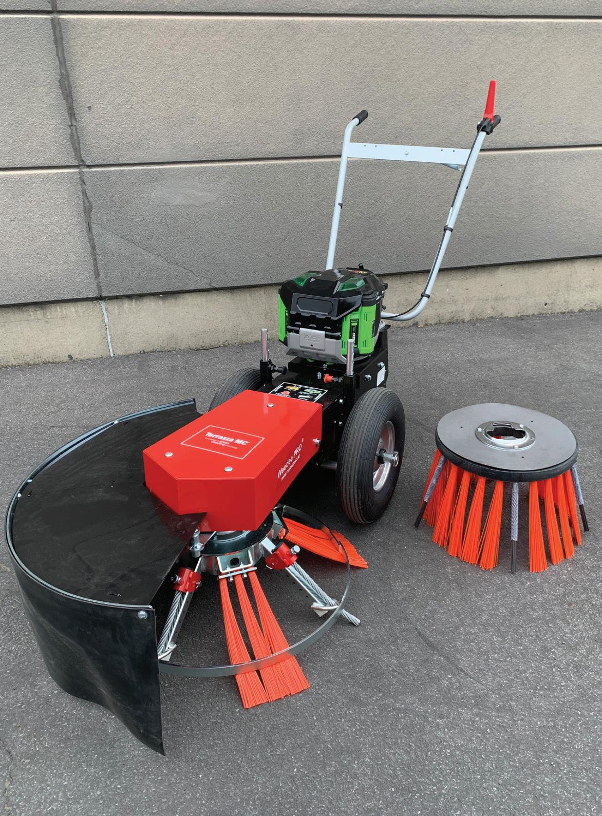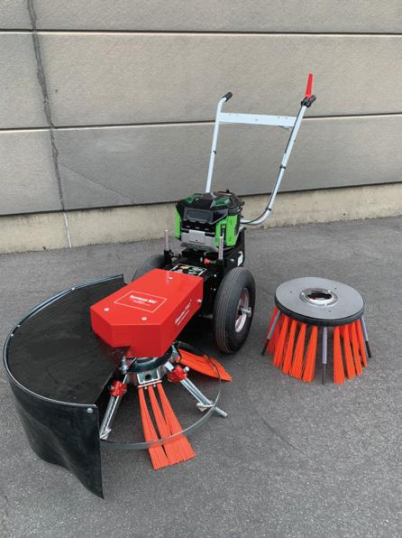 KJ520 Narrow Broom, which is designed for sweeping and removal of material such as snow, leaves, dirt, light gravel, and even thatch. It is designed to fit narrow walkways 1.22 metres wide.