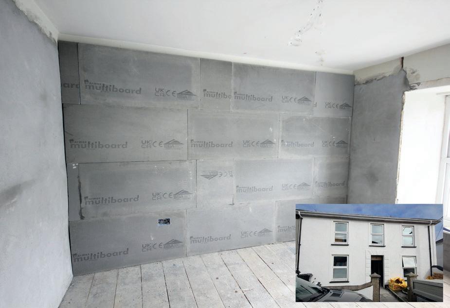 Peter Adams comments: “Generally we go in for quite modern upgrades of period properties to improve the amenity and greatly extend the life of the buildings for our clients. In the case of this three-bedroom house in Hayle, the owner was seeking to significantly improve the thermal performance of what had been quite a cold house which had also suffered from damp problems in areas. So, where in the past we have typically used Multiboard for renovating bathrooms, here we are installing it across the inner face of all the external walls.”