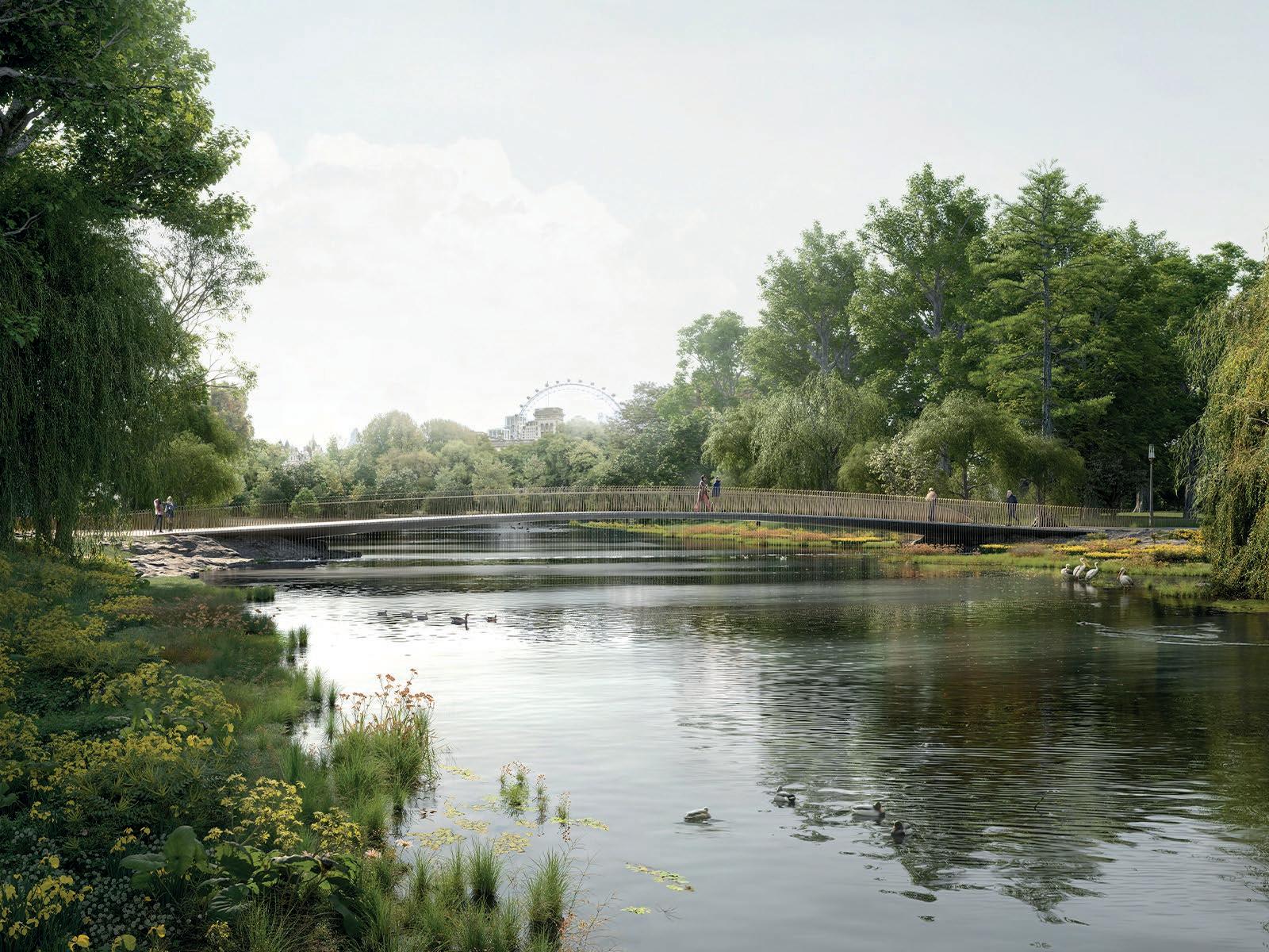 The site traverses London’s Grade I listed St James’s Park from Marlborough Gate on The Mall covering land surrounding the pathway