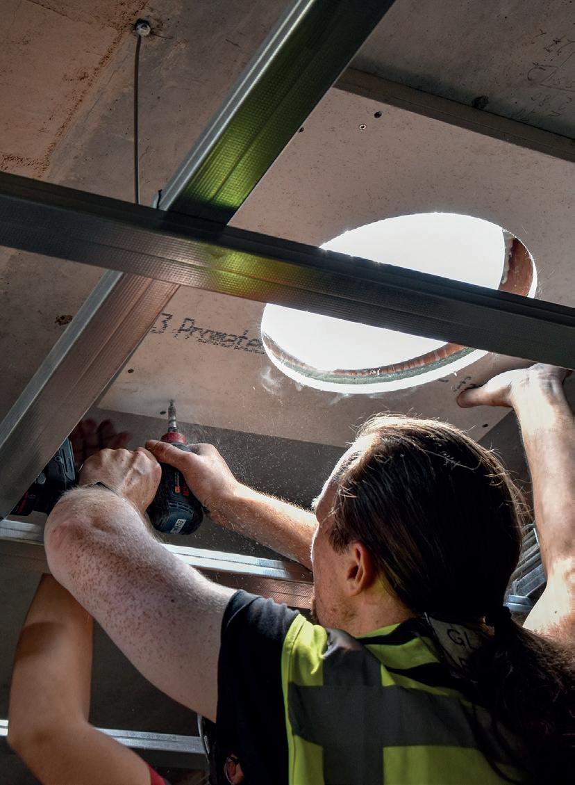 Following their removal, Cleshar applied two Mapei mortars to the bare walls, to repair and render the surfaces. They included very low VOC Planitop Fast 330 quick-setting, fibre-reinforced cementitious levelling mortar and Planitop 200 – a water-repellent cementitious skimming mortar with a finetextured, natural finish.