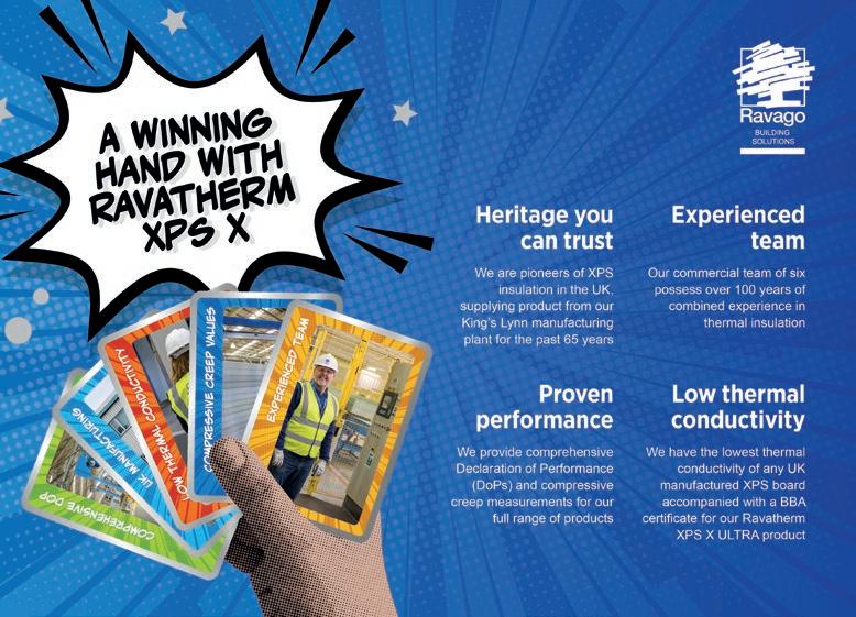With comprehensive Declarations of Performance (DoPs), full transparency on compressive creep across its entire product range, and the lowest thermal conductivity of any UK manufactured XPS board accompanied with a BBA certificate for its Ravatherm XPS X ULTRA, Ravago customers are left holding all the aces when it comes to insulation performance, reliability, and heritage they can trust.