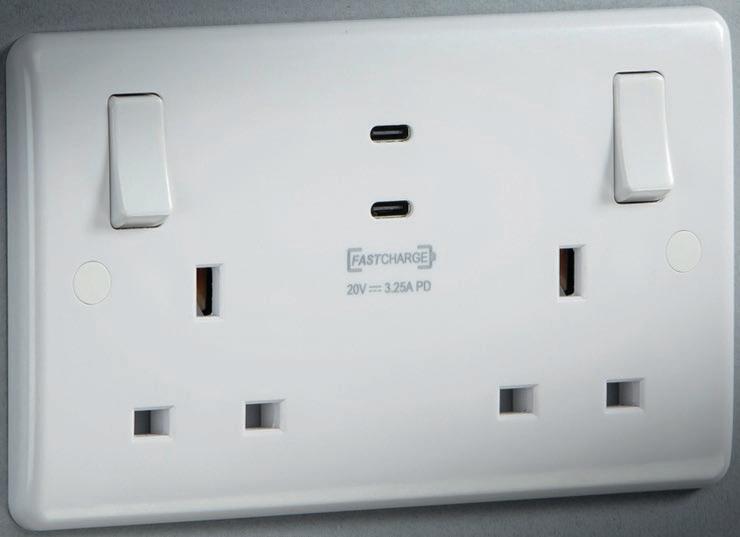 Delivering faster and more efficient charging for modern devices, the 13A SP Switched Socket with Dual USB-C (65W Dual Fastcharge) from Knightsbridge is the UK market’s most powerful dual socket featuring USB charging and represents an important upgrade to the company’s existing 45W model.