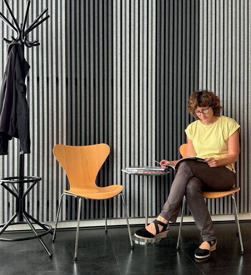 Offering a sleek, linear aesthetic that balances visual impact with acoustic performance, the Groove Wall is made from 20mm-wide thermoformed felt panels that give the impression of slim vertical slats. Their unique W-shape provides strength and rigidity without the need for additional support materials.
