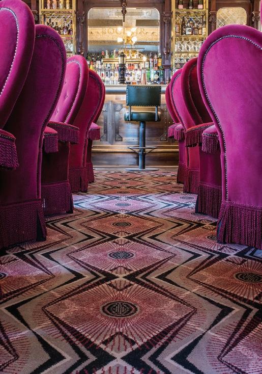Glasgow’s Boclair House Hotel has been transformed with a masterclass in restorative interior design including bespoke carpets from Wilton Carpets Commercial. Commissioned by owner, Manorview Hotels, interior and architecture practice Space I.D has without a doubt created a wonderfully bold sense of opulence and decadence, celebrating the building’s Art Nouveau heritage and stylish glamour of the latter Art Deco period. Carpets from Wilton have been instrumental in creating the atmospheric interior, fitted right throughout the hotel in an array of truly stunning designs bringing individuality, glamour and wondrous comfort perfectly in keeping with the unapologetic luxury of Boclair House.