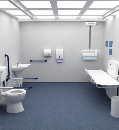 Space To Change toilets plug the gap between conventional (Building Regulations Approved Document M 2013) wheelchairaccessible toilets, and the ‘desirable’, additional, larger and better equipped Changing Places+ toilets. It encompasses a 7m2+ (3m x 2.5m min) wheelchair-accessible toilet that further includes an adult-sized changing bench and a hoist. Space To Change has been developed with leading Changing Places campaigners and Clos-o-Mat (Britain’s leading supplier of disabled toilet solutions at home and away). Firefly Community, an online special needs community, will drive the campaign, supporting campaigners and raising awareness of the need for accessible toilets that include height adjustable changing benches and hoists.