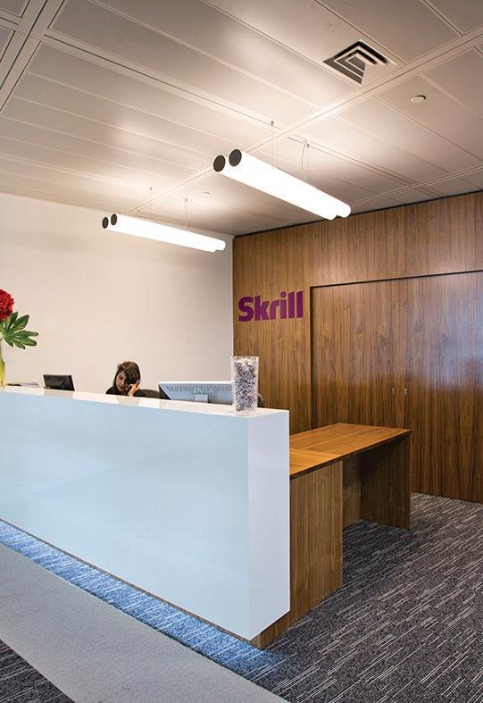 Looking to upgrade the interior design of its reception in Canary Warf, London, Skrill called on GTA Interiors and Clarke Rendall, to bring a creative approach and technical skills to their reception area.