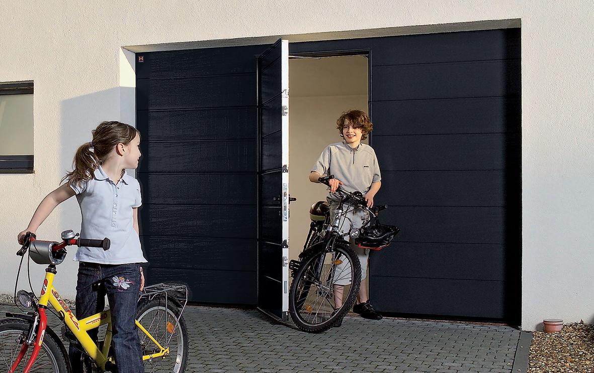 Hörmann’s sectional garage doors provide the ultimate in security, safety and efficiency. When fitted with one of the manufacturer’s ProMatic or SupraMatic operators, the automatic insulated and solid timber versions have been allocated Policeapproved Secured by Design Status. If minimising heat loss is a priority, these sectionals are available with a 42mm-thick polyurethane infill, seals on all four sides and Hörmann’s specially designed ThermoFrame technology. For added convenience, a wicket door can be incorporated into the design to provide an alternative pedestrian entrance. The stainless steel threshold is only 5mm high off the ground, making it easy to take bikes or wheelbarrows through and reducing the chance of tripping. The colour and finish of both doors match for seamless continuity, while optional multi-point locking adds to security.