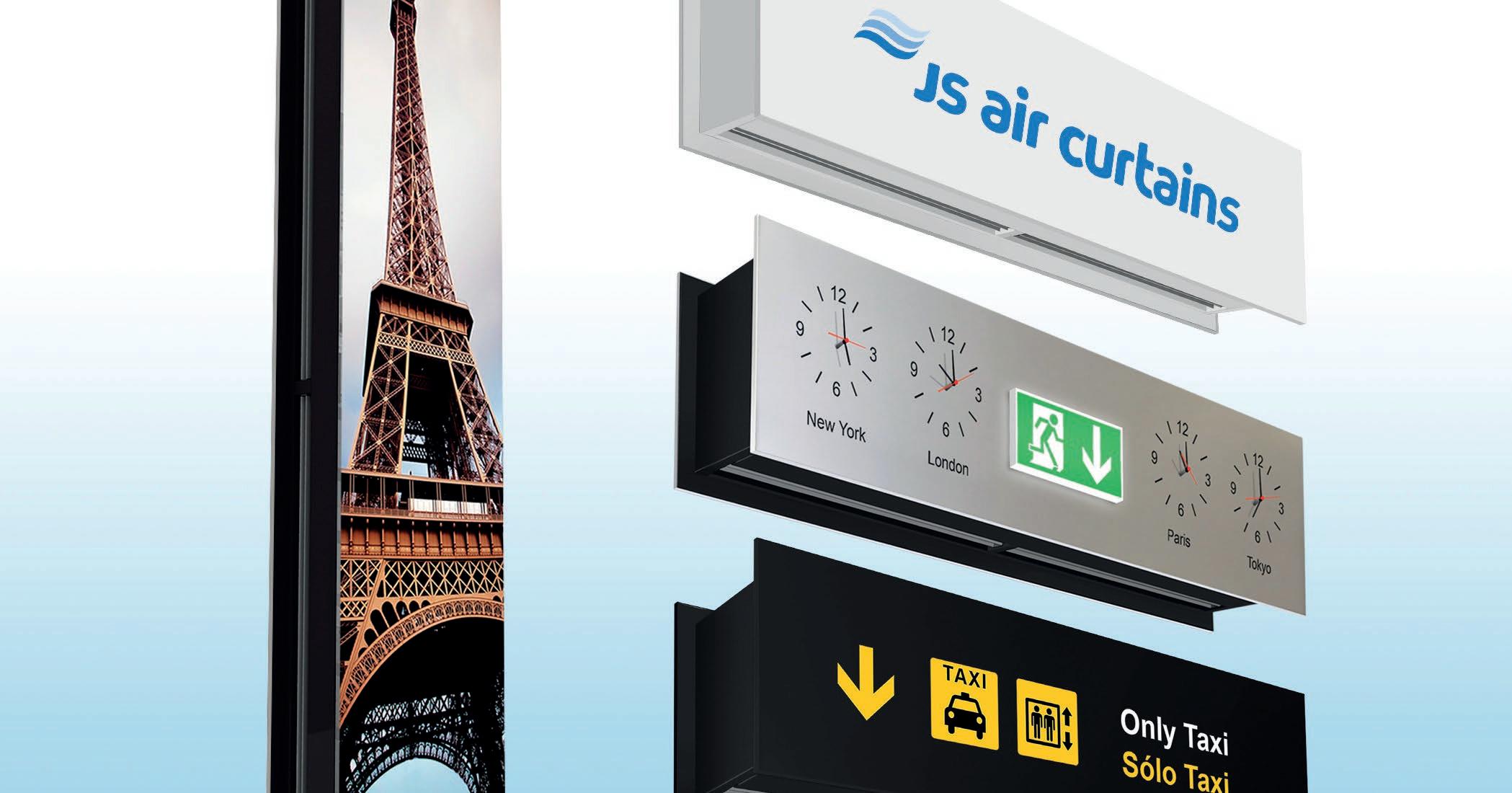 Architects and consultants can now enjoy a freehand with air curtain design thanks to the Zen from JS Air Curtains. Fascia panels can be custom made in many different materials, screen printed to carry logos or images, and manufactured to incorporate elements such as clocks and LED displays. Materials designers have specified on custom Zen fascias range from stainless steel, wood, PU leather, high impact polystyrene and PET, each chosen to perfectly match the architecture of the entrance. As the fascias can also be provided with vinyl graphics, fire exit signs and illuminated 3D lettering, the possibilities are limited only by the designer´s imagination. A “visual installation service”, by JS Air Curtains, allows a designer to preview their creations with a realistic digital mock-up of the air curtain in-situ using an image of the entrance supplied by the client.