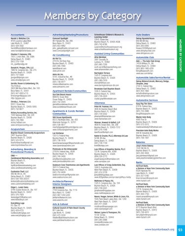 Donald K. Porges, CPA, LLC 1880 N. Congress Ave., Ste. 215 Boynton Beach, FL 33426 (561) 737-5568 jporges@dporges.com www.donaldporges.com Gerstle, Rosen & Goldenberg, P.A. The Porticos 3835 NW Boca Raton Blvd., Ste. 100 Boca Raton, FL 33431 (561) 447-4000 x115 kmessinger@grgcpa.com http://grgcpa.com Christy L. Peterson, E.A. 632 E. Ocean Ave. Boynton Beach, FL 33435-5005 (561) 732-6677 Victory Accounting Service, Inc. 1500 Gateway Blvd., Ste. 220 Boynton Beach, FL 33436 (561) 739-7990 victory1v@aol.com www.victoryaccounting.com