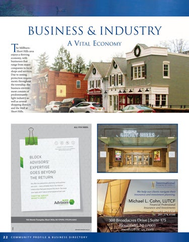 he MillburnShort Hills area enjoys a thriving economy, with businesses that range from major companies to local shops and services. Due to zoning protection requirements throughout the township, the business environment consists of predominantly light industry as well as several shopping districts and the Mall at Short Hills.
