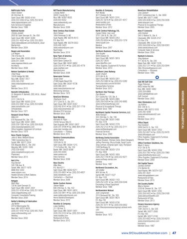 Northern Lines Railway Justin Chalich 2015 6th St. N. Saint Cloud, MN 56303-3201 (320) 253-5983 • Fax: (320) 253-5282 www.anacostia.com/nlr/nlr.html Transportation Services Member Since: 2013 Northern Star Therapy Dan Weaver 251 County Rd. 120, Ste. A Saint Cloud, MN 56303-4885 (320) 259-5429 • Fax: (320) 240-8905 www.northernstartherapy.com Physical & Occupational Therapy Member Since: 1997 Northland Capital Financial Services, LLC Willis Kleinjan 333 33rd Ave. S., Ste. 100 Saint Cloud, MN 56301-5495 P.O. Box 7278 Saint Cloud, MN 56302-7278 (320) 252-2122 • Fax: (320) 252-2111 www.northlandcapital.com Financial Services Member Since: 2000 Northway Dental Associates Denise Knutson, Thomas Como, Brent Deragisch, Jeffrey Flemming, Bruce Kudak, Sarah Layne, Greg Lehman, Amanda Sperl, Gary Thompson 1500 Northway Dr. Saint Cloud, MN 56303-1218 P.O. Box 1659 Saint Cloud, MN 56302-1659 (320) 253-7700 • Fax: (320) 253-9271 www.northway-dental.com Dentists Member Since: 1987 Northwest Excavators, Inc. Jim Gratke 906 5th Ave. N. Sartell, MN 56377-1527 P.O. Box 1103 Saint Cloud, MN 56302-1103 (320) 252-4781 • Fax: (320) 259-0246 Excavating & Road Equipment Member Since: 1988 Northwestern Mutual Josh Longnecker 3315 Roosevelt Rd., Ste. 300 Saint Cloud, MN 56301-9674 P.O. Box 726 Saint Cloud, MN 56302-0726 (320) 251-6711 • Fax: (320) 259-0652 http://thecolumnsresourcegroup-stcloud.nmfn. com Insurance Member Since: 1972