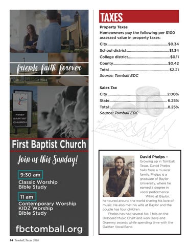 TAXES Property Taxes Homeowners pay the following per $100 assessed value in property taxes: City...............................................................$0.34 School district............................................ $1.34 College district............................................ $0.11 County.........................................................$0.42 Total.............................................................. $2.21 Source: Tomball EDC Sales Tax City..............................................................2.00% State............................................................ 6.25% Total.............................................................8.25%